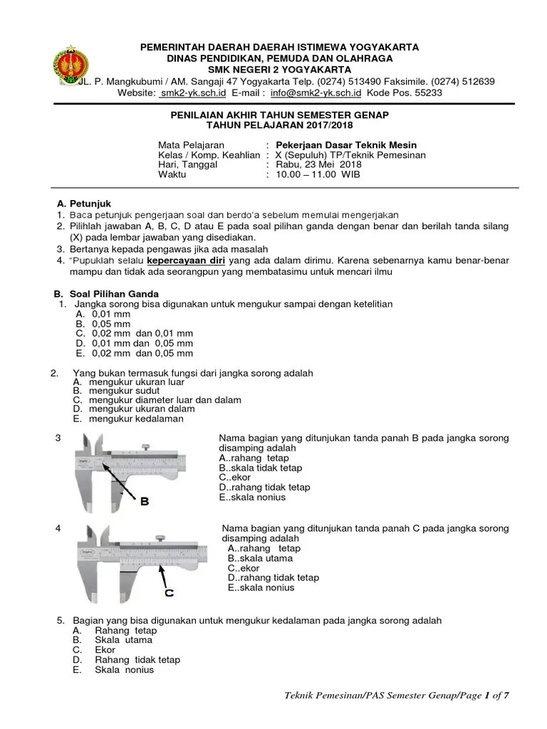 Misal soal pekerjaan dasar teknik otomotif beserta jawabannya.